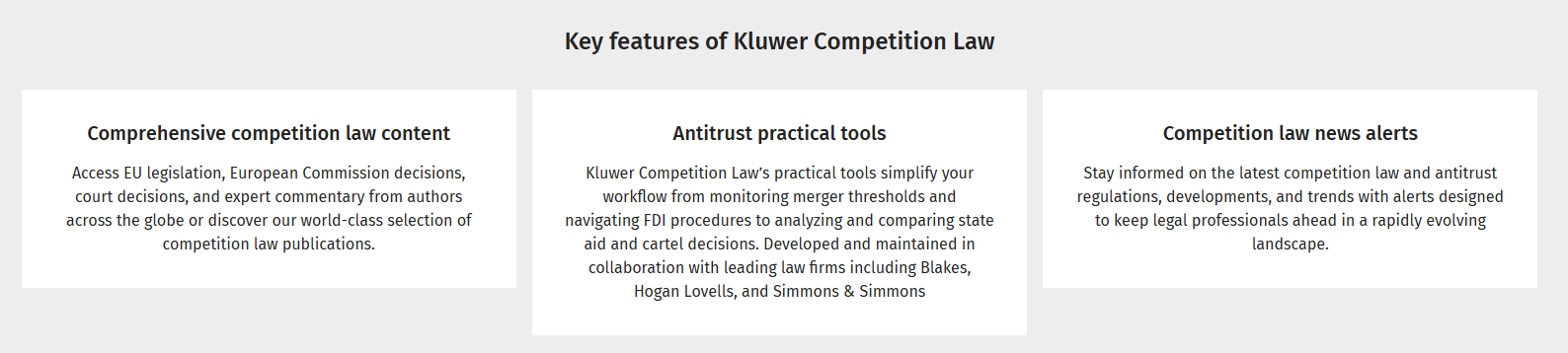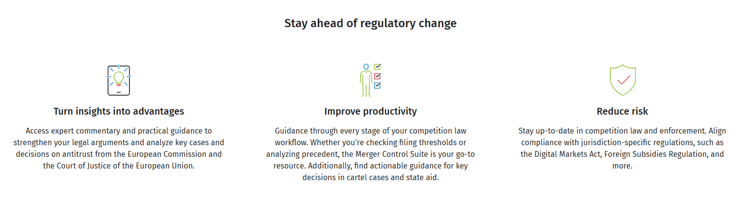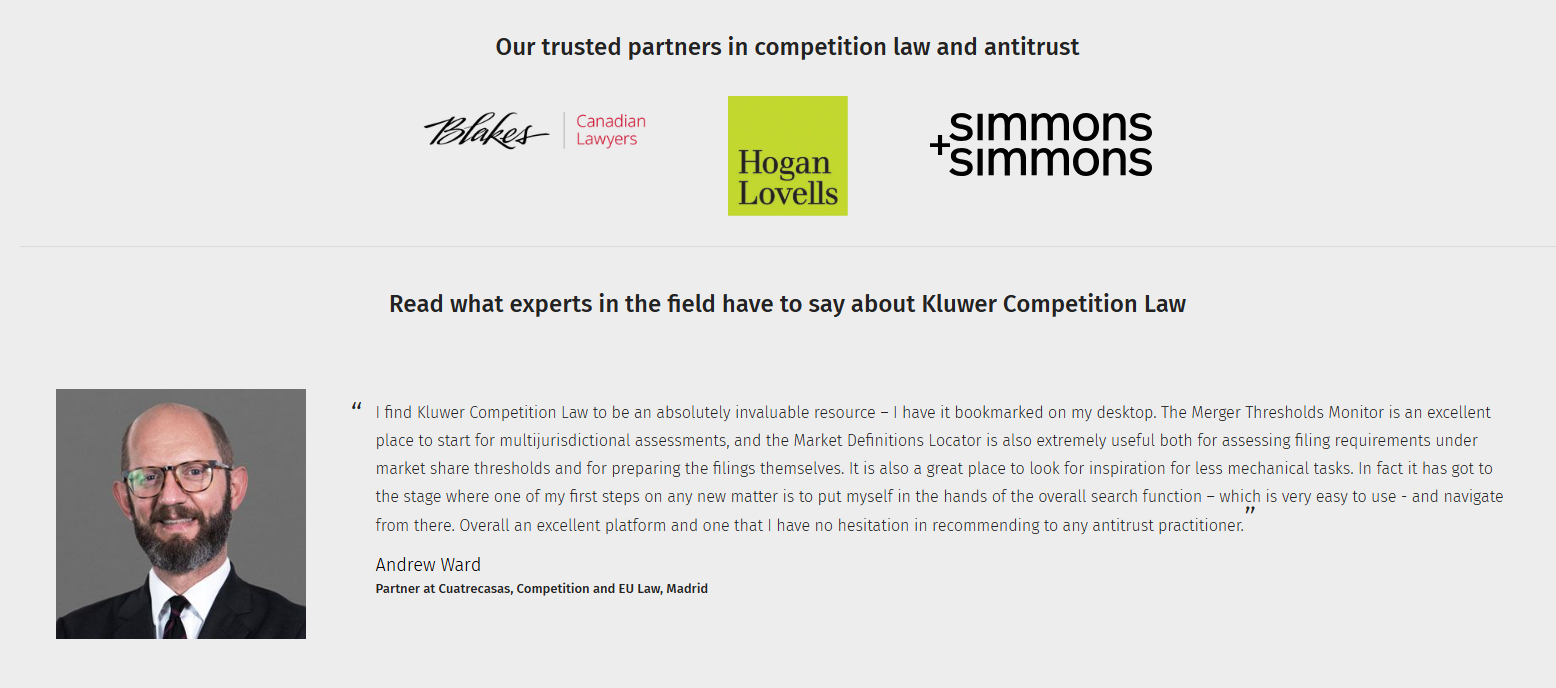 Kluwer Competition Law is a trusted legal research platform designed for professionals navigating the complexities of competition and antitrust law enforcement. Drawing on authoritative insights from competition authorities, leading legal practitioners, and regulatory bodies, the research platform offers comprehensive coverage of key areas including merger control, state aid, antitrust, cartels and the evolving digital markets act.